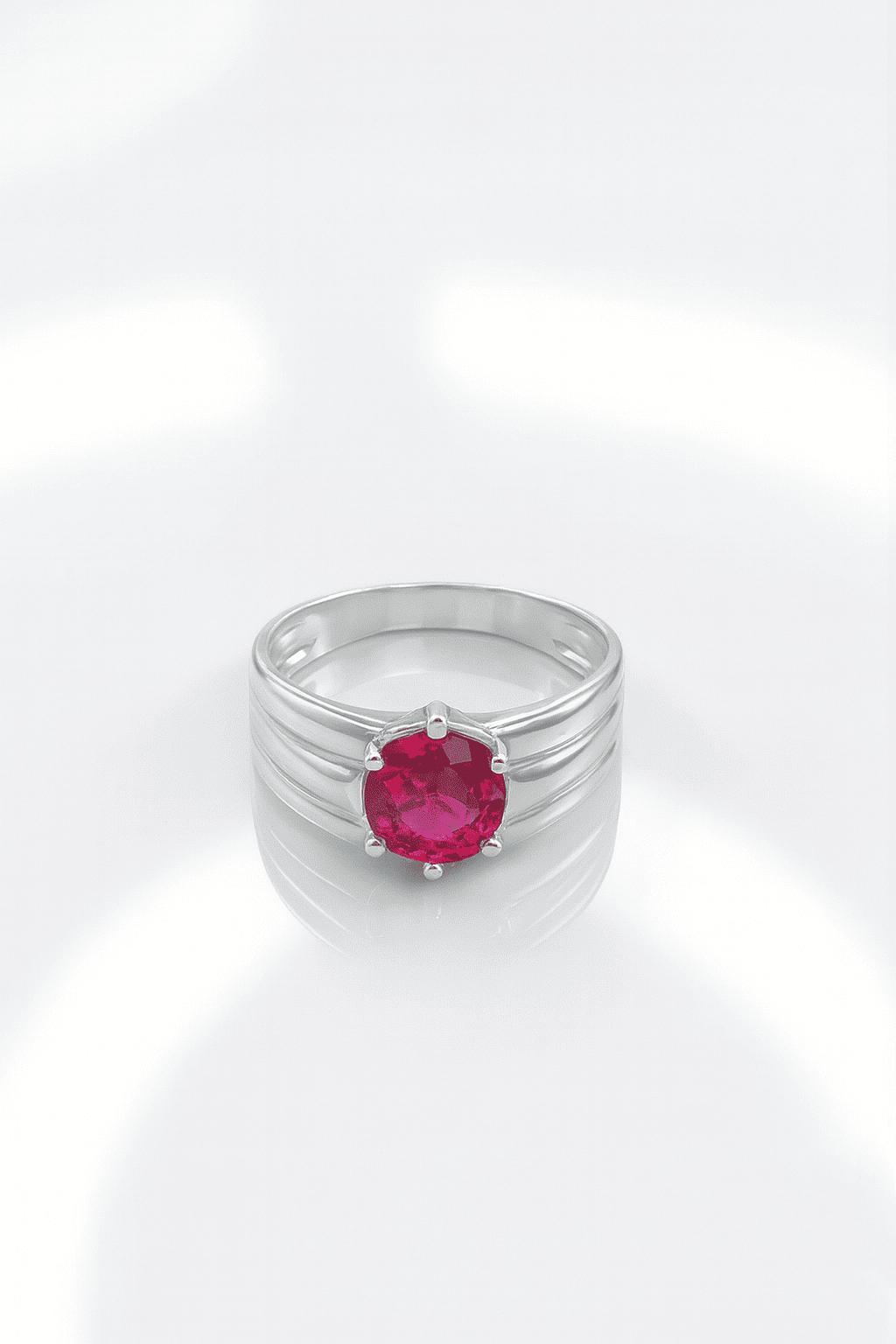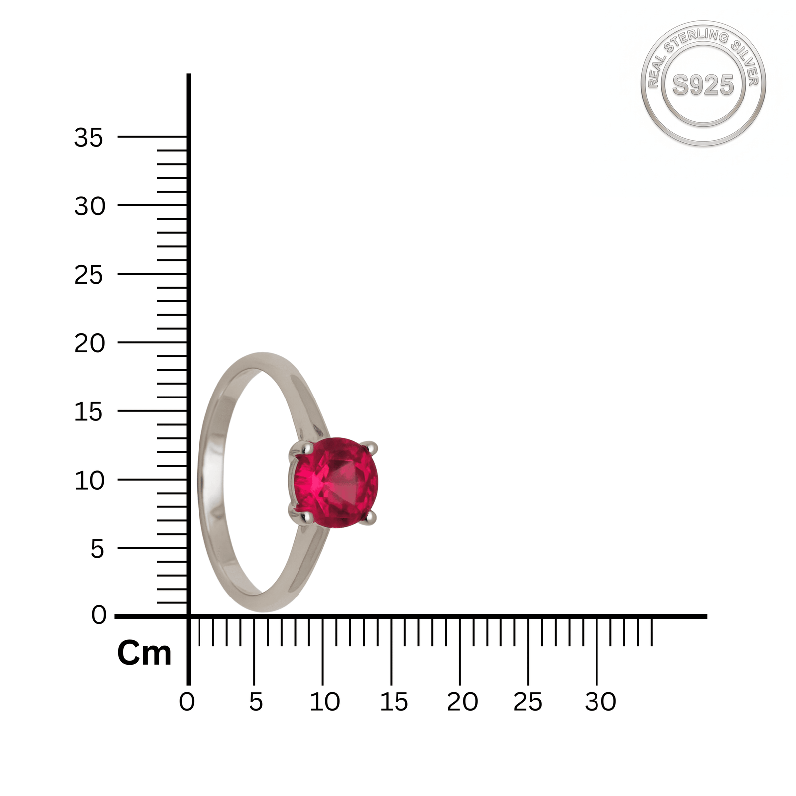 Make a bold statement with this classic 925 Sterling Silver Solitaire ring. It features a vibrant Ruby Red round-cut American Diamond held securely in a four-prong setting, offering a timeless and sophisticated look. Weighing just 1.51 grams, this delicate ring is perfect for daily wear or as a meaningful gift of love.