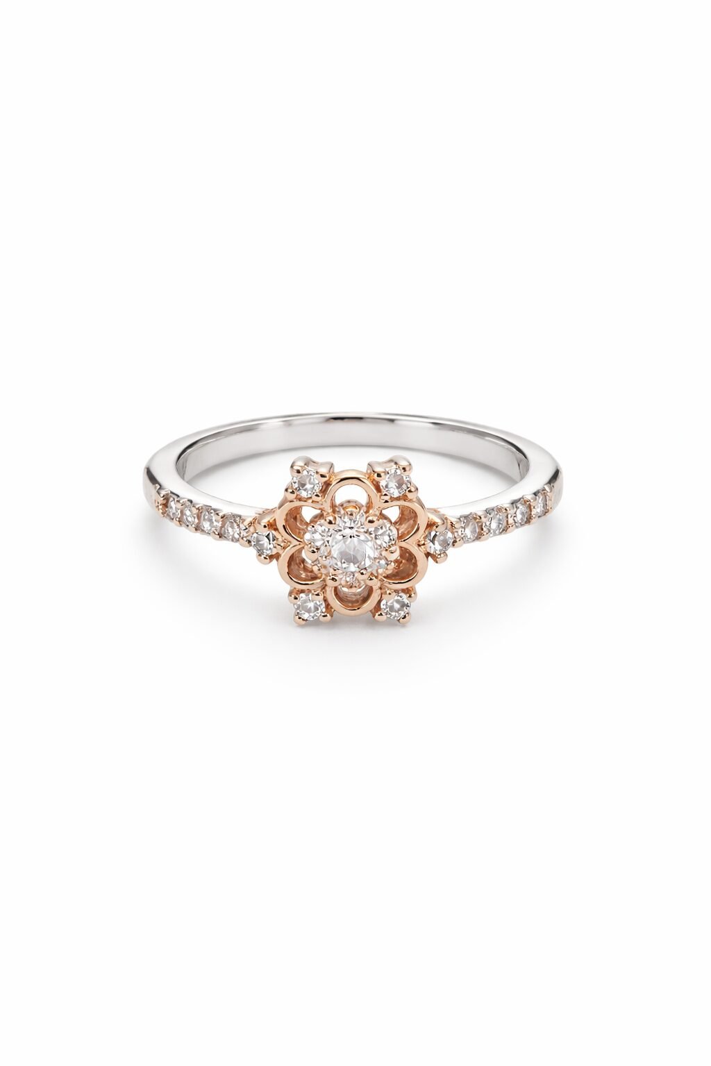 Bloom with elegance wearing this stunning 925 Sterling Silver ring. The design features a dazzling floral cluster centerpiece accented with Rose Gold plating, surrounded by a halo of petal shapes and a sparkling stone-studded band. Weighing 2.26 grams, this beautiful two-tone ring offers a unique and luxurious look, perfect for special occasions or daily wear.