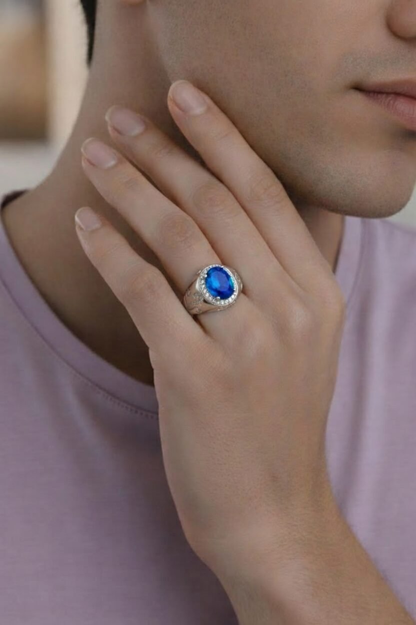 | Stone Type | Royal Blue Oval & White Round/Baguette American Diamond (CZ) |