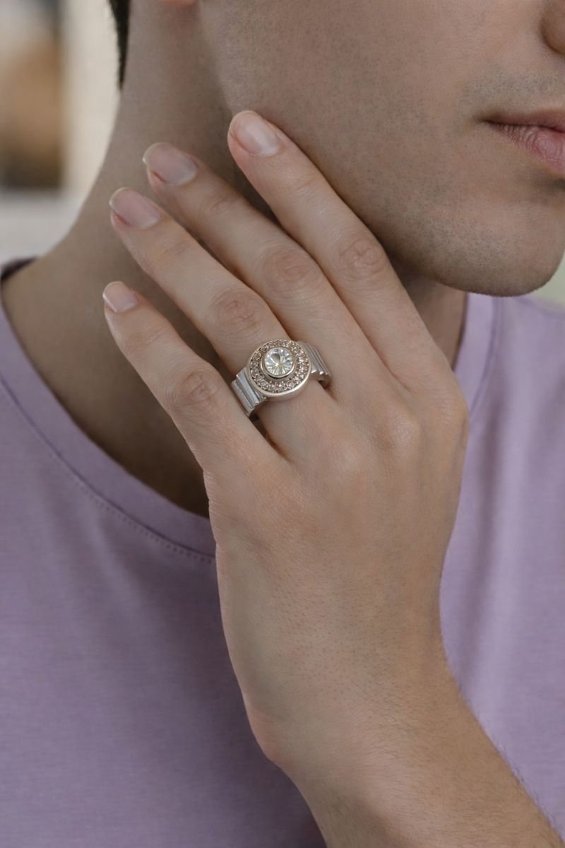 Be the first to review “Sophisticated 925 Sterling Silver Oval Halo Ring | Men’s Designer Ribbed Band (Size 20)”