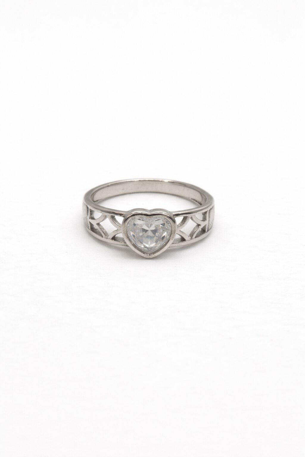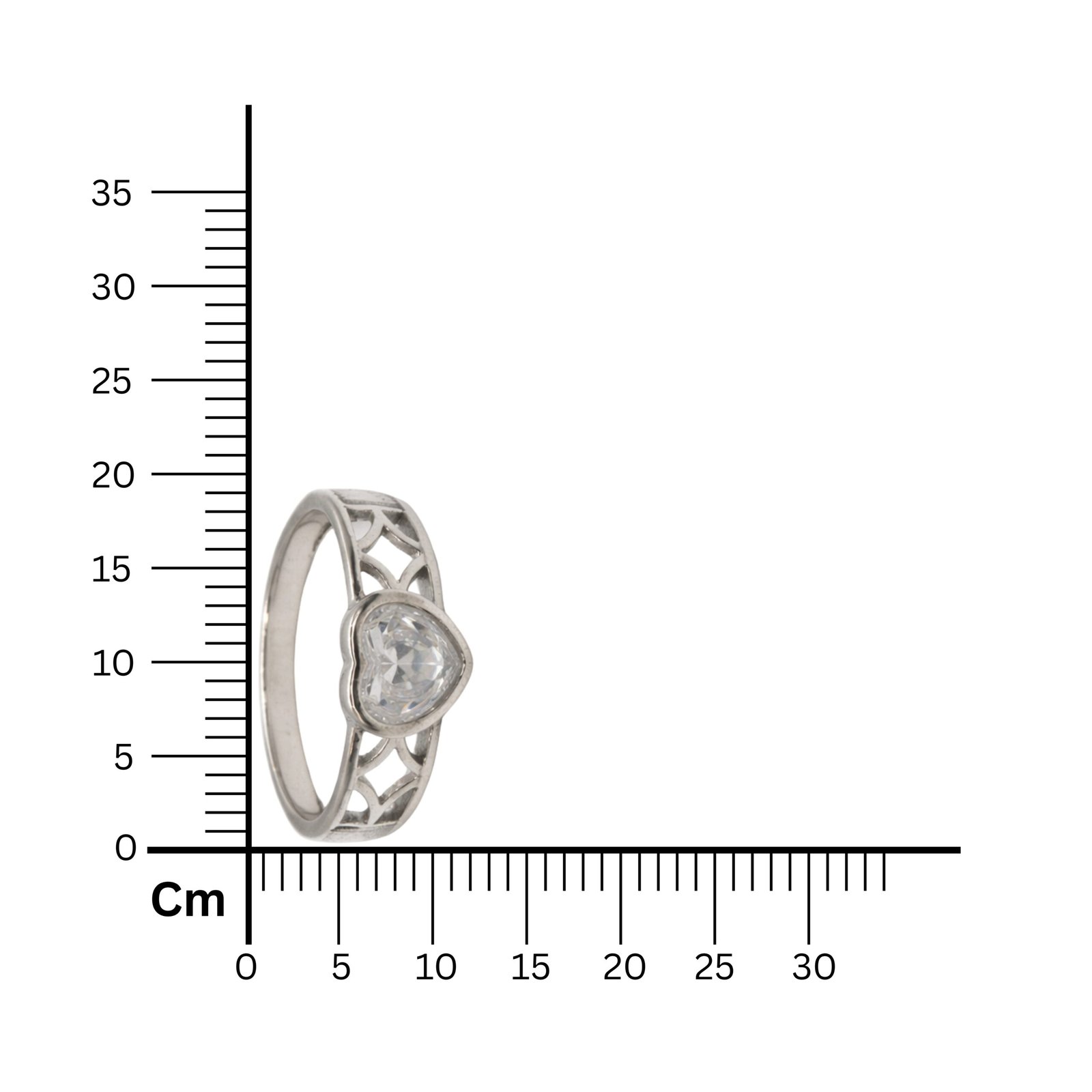 Capture the essence of romance with this delicate 925 Sterling Silver ring. The centerpiece is a sparkling heart-shaped White American Diamond enclosed in a sleek bezel setting. The band features intricate filigree cutout details on the shoulders, adding a vintage-inspired and airy charm. Weighing 2.30 grams, this lovely ring is a perfect symbol of love, ideal for promise rings or everyday elegance.
