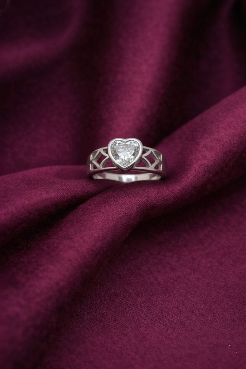 Be the first to review “Sweet 925 Sterling Silver Heart Solitaire Ring with Filigree Band | Romantic Finger Ring for Women (Size 10)”