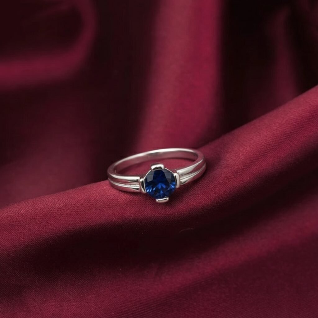 Achieve a look of graceful sophistication with this stunning 925 Sterling Silver Solitaire ring. The design features a deep Royal Blue round-cut stone set on a stylish split-shank band, adding a modern twist to a classic style. Weighing 1.93 grams, this elegant ring is perfect for office wear, casual outings, or as a meaningful promise ring.